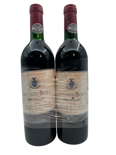 Lacoste Borie Pauillac 1985 une bouteille avec étiquette détachée (prix pour les deux)